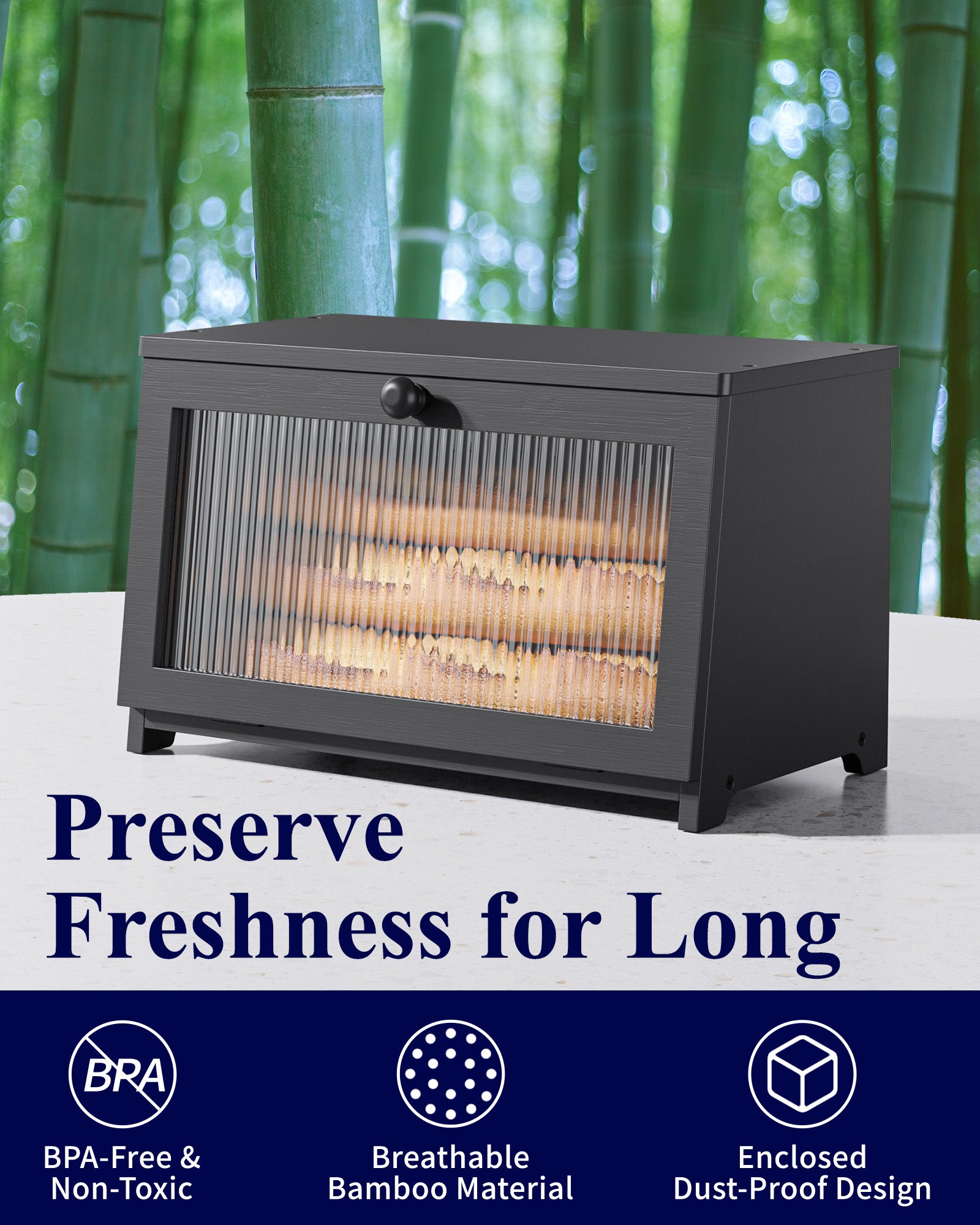 - PREMIUM BAMBOO MATERIAL: Crafted from premium bamboo wood, this home and kitchen essential is BPA-free and non-toxic. The natural bamboo effectively resists dust and moisture, creating a protective environment for your bread. It helps to keep your bread soft and fresh at room temperature, preserving its delicious taste.